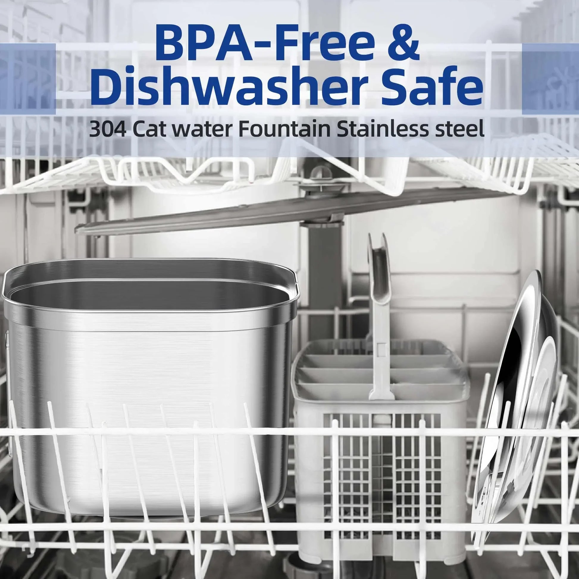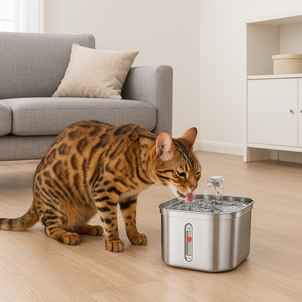 The stainless steel fountain keeps water flowing, filtering out hair and debris so your cat always has clean, oxygen-rich water. The gentle stream encourages natural drinking behavior keeping them hydrated and healthy effortlessly.
